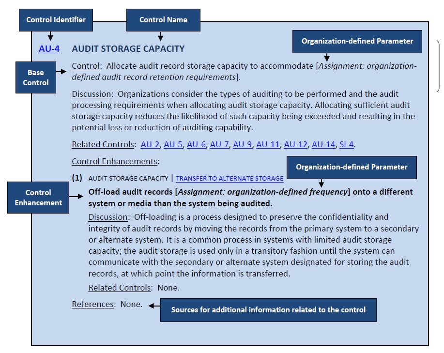 Controls can include administrative, technical, and physical aspects. NIST SP 800-53 contains the management, operational, and technical safeguards or countermeasures prescribed for an information system.